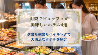 山梨でビュッフェが美味しいホテルを厳選紹介。河口湖や富士吉田、八ヶ岳エリアの人気4宿について、夕食・朝食バイキングの内容や時間帯、料金目安まで詳しく解説します。夕朝ともに満足度の高いホテルを探している方必見です。